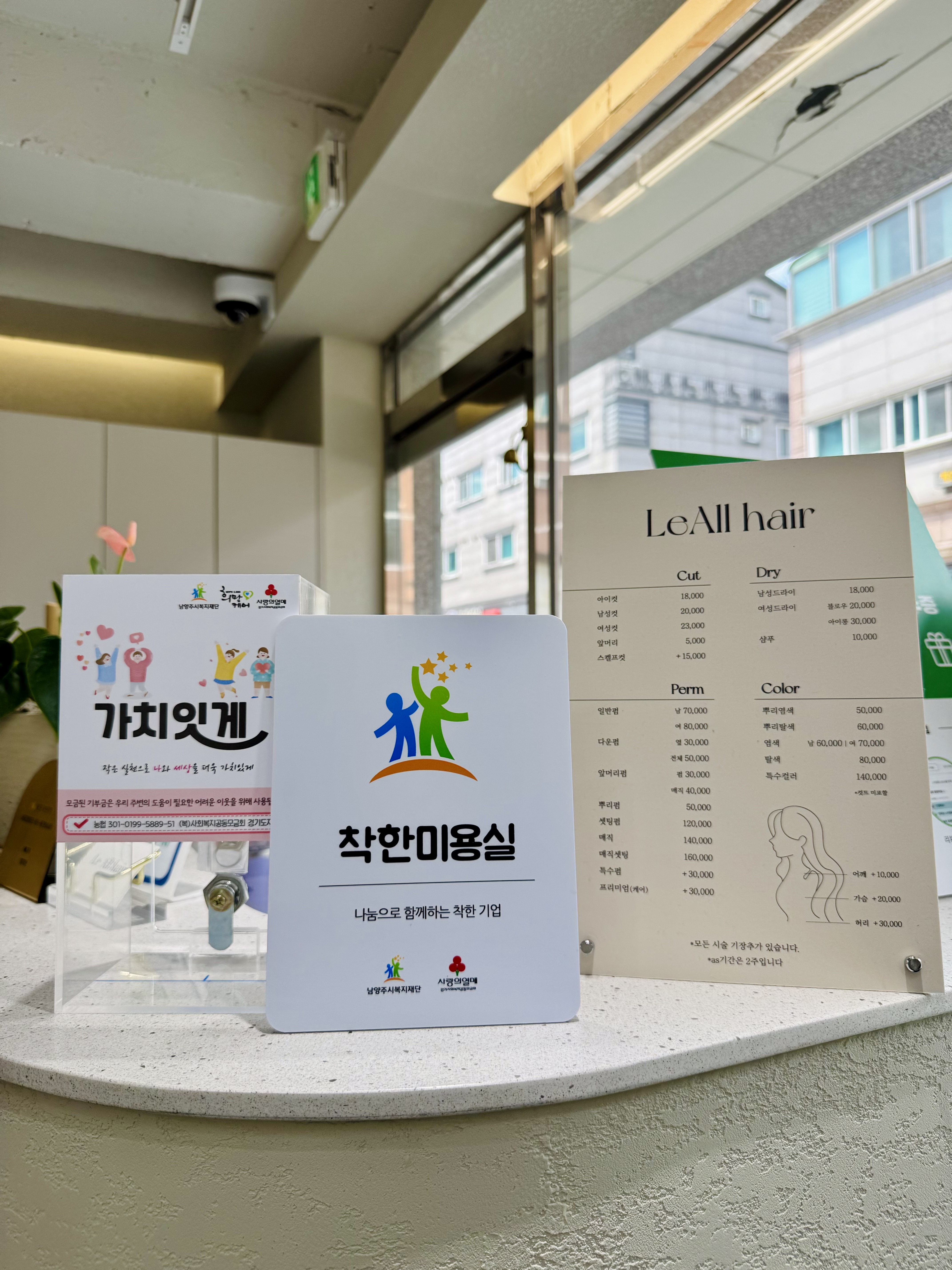 착한기부 [착한미용실] 르올 헤어 | [연번] : | [일자] : 2025.07.22.(화) 작성자 관리자 등록일자 2025년 7월 23일 11시 35분 27초 조회 178 [착한미용실] 제11호 '르올 헤어'- 가 입 일 : 2025. 7. 22.(화)- 소 재 지 : 경기도 남양주시 진접읍※ 착한미용실이란?미용실의 앞머리 커트 수익금을 어려운 이웃을 위해 기부하는 남양주시복지재단의 소상공인 소액기부 프로그램입니다. 르올헤어.jpg [ Size : 3.63MB, Down : 95 ] 미리보기 다운로드 목록보기