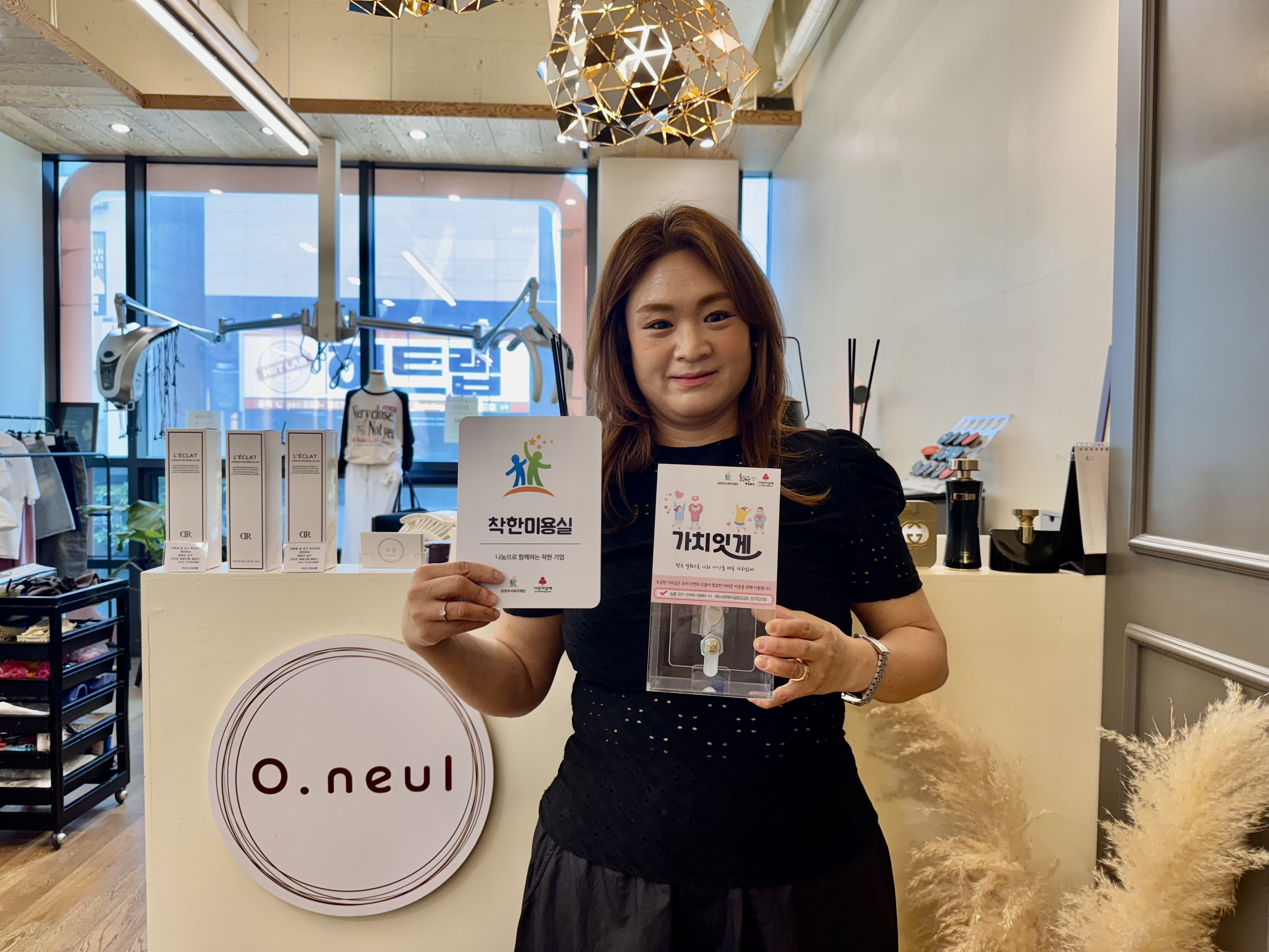 착한기부 [착한미용실] 오늘헤어디자인 | [연번] : | [일자] : 2025.06.18.(수) 작성자 관리자 등록일자 2025년 6월 26일 16시 41분 43초 조회 175 [착한미용실] 제2호 '오늘헤어디자인'- 가 입 일 : 2025. 6. 18.(수)- 소 재 지 : 경기도 남양주시 다산동※ 착한미용실이란?미용실의 앞머리 커트 수익금을 어려운 이웃을 위해 기부하는 남양주시복지재단의 소상공인 소액기부 프로그램입니다. 사진 (1).jpg [ Size : 1.8MB, Down : 85 ] 미리보기 다운로드 목록보기