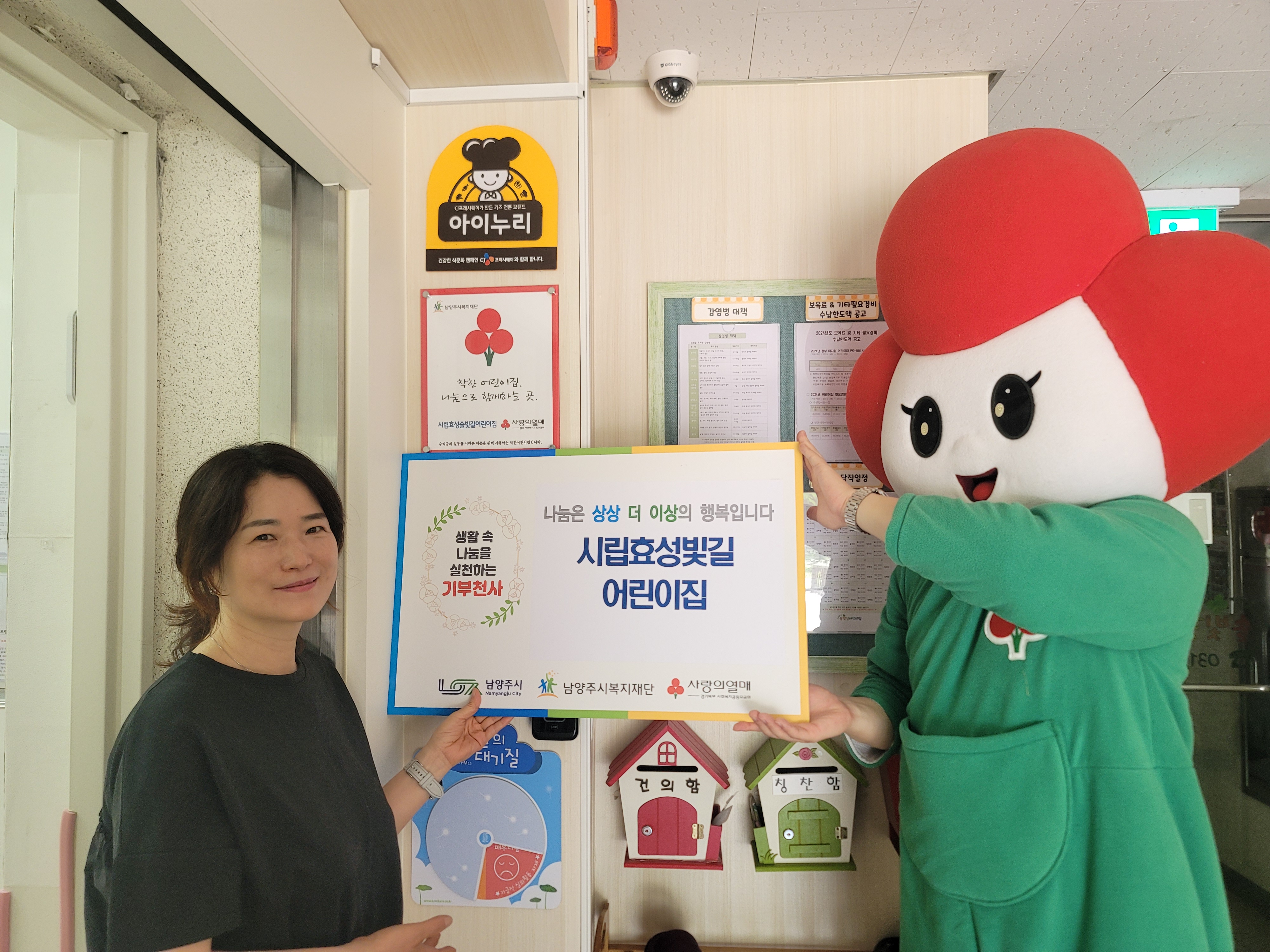 나눔꿈나무챌린지 효성솔빛길어린이집 | [연번] : | [일자] : 2024.06.10 작성자 관리자 등록일자 2024년 6월 10일 15시 8분 46초 조회 449 ▷ 남양주시복지재단 착한가게 32호 ※ '착한가게'란? 월 3만원 이상의 금액을 기부하며 지역사회와 상생하는 가게 시립효성빛길어린이집 1.jpg [ Size : 2.96MB, Down : 256 ] 미리보기 다운로드 목록보기