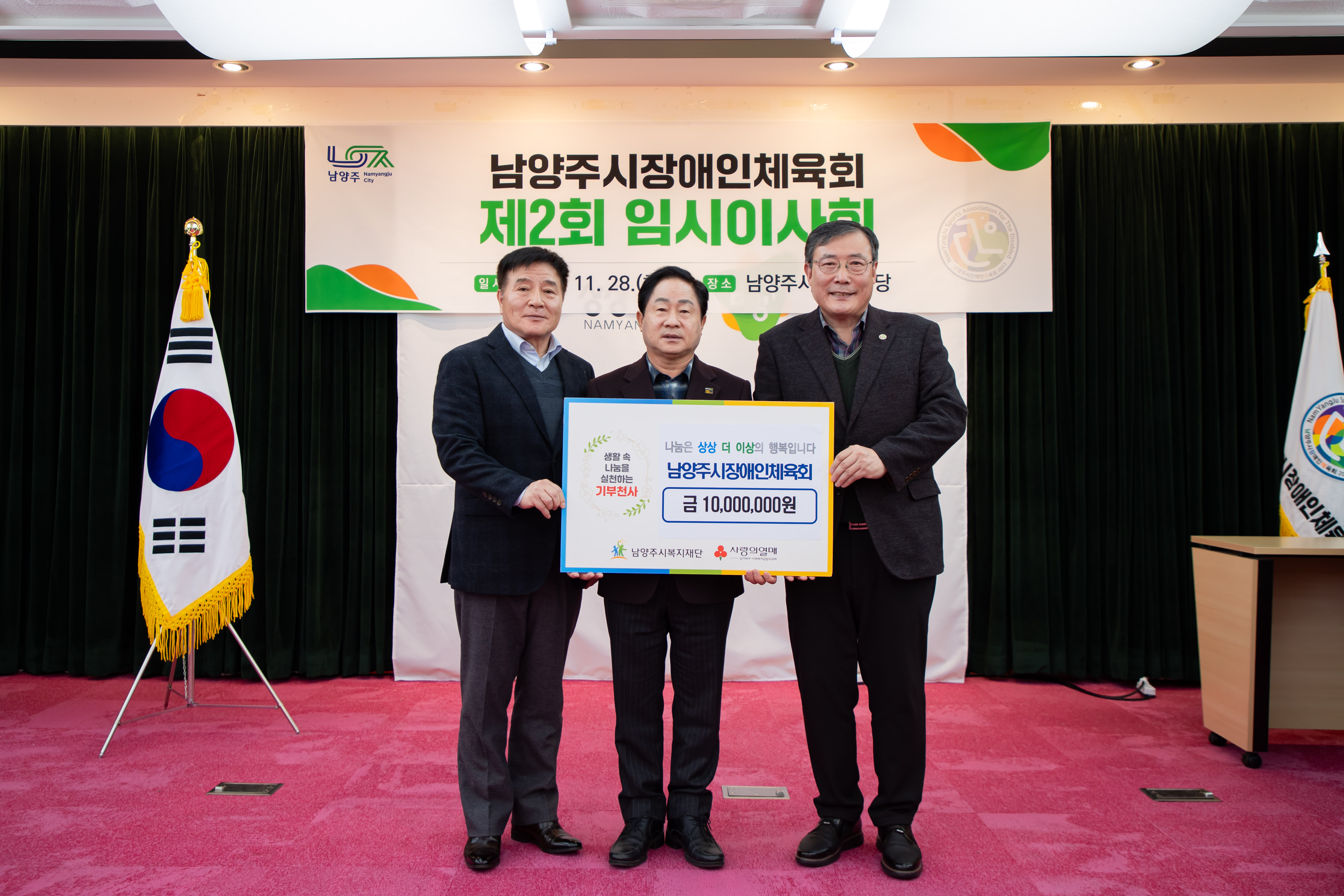 남양주시장애인체육회 | [연번] : 정보가 없습니다. | [일자] : 2023.11.28. 작성자 관리자 등록일자 2023년 11월 29일 9시 3분 32초 조회 404 ▷ 후원일자 : 2023년 11월 28일(화) ▷ 후원내용 : 금10,000,000원(금일천만원) AH4I8176.JPG [ Size : 1.63MB, Down : 172 ] 미리보기 다운로드 목록보기