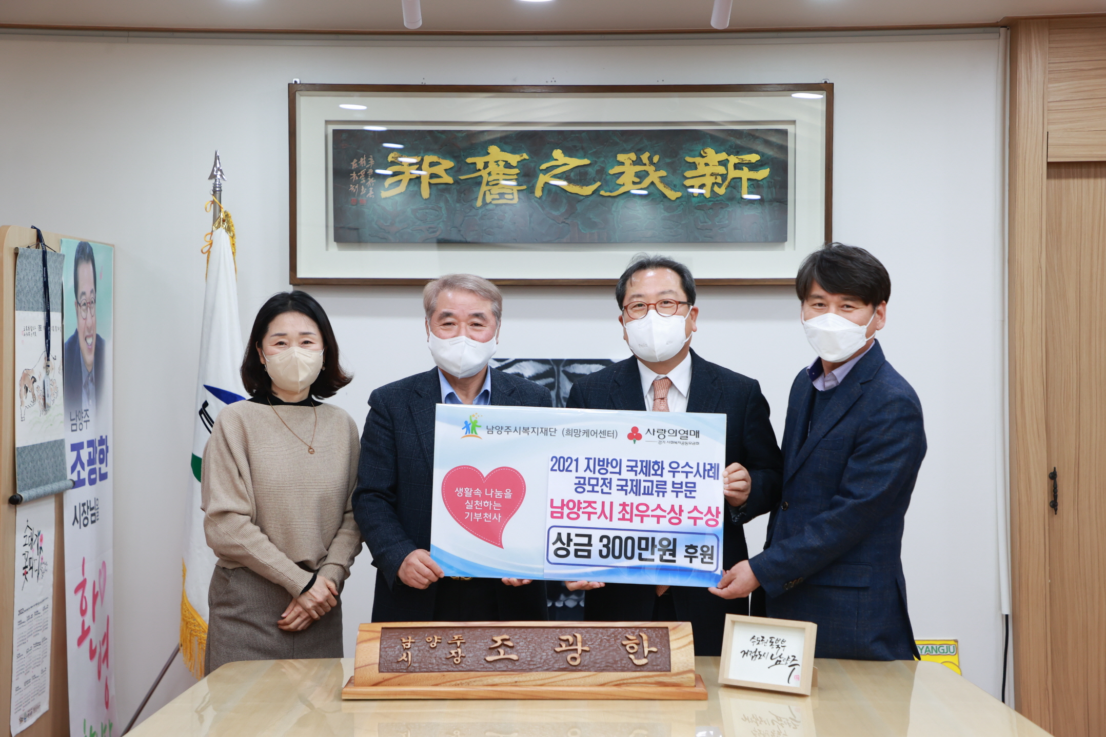 남양주시 | [연번] : 정보가 없습니다. | [일자] : 2022.01.04. 작성자 관리자 등록일자 2022년 1월 5일 18시 48분 17초 조회 499 ▷ 후원일자 : 2022년 1월 4일(화) ▷ 후원내용 : 국제화 우수사례 공모전 수상 시상금 300만원 기부 남양주시, 국제화 우수사례 공모전 수상 시상금 300만원 기부 사진.JPG [ Size : 1.3MB, Down : 291 ] 미리보기 다운로드 목록보기