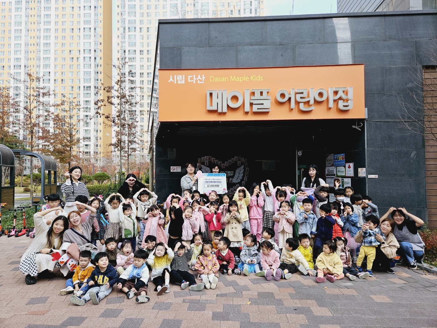 시립다산메이플어린이집 | [연번] : 정보가 없습니다. | [일자] : 2023.11.02. 작성자 관리자 등록일자 2023년 11월 3일 17시 18분 16초 조회 426 ▷ 후원일자 : 2023년 11월 2일(목) ▷ 후원내용 : 시장놀이 수익금 1,004,000원 KakaoTalk_20231102_111906058.jpg [ Size : 756.48KB, Down : 205 ] 미리보기 다운로드 목록보기