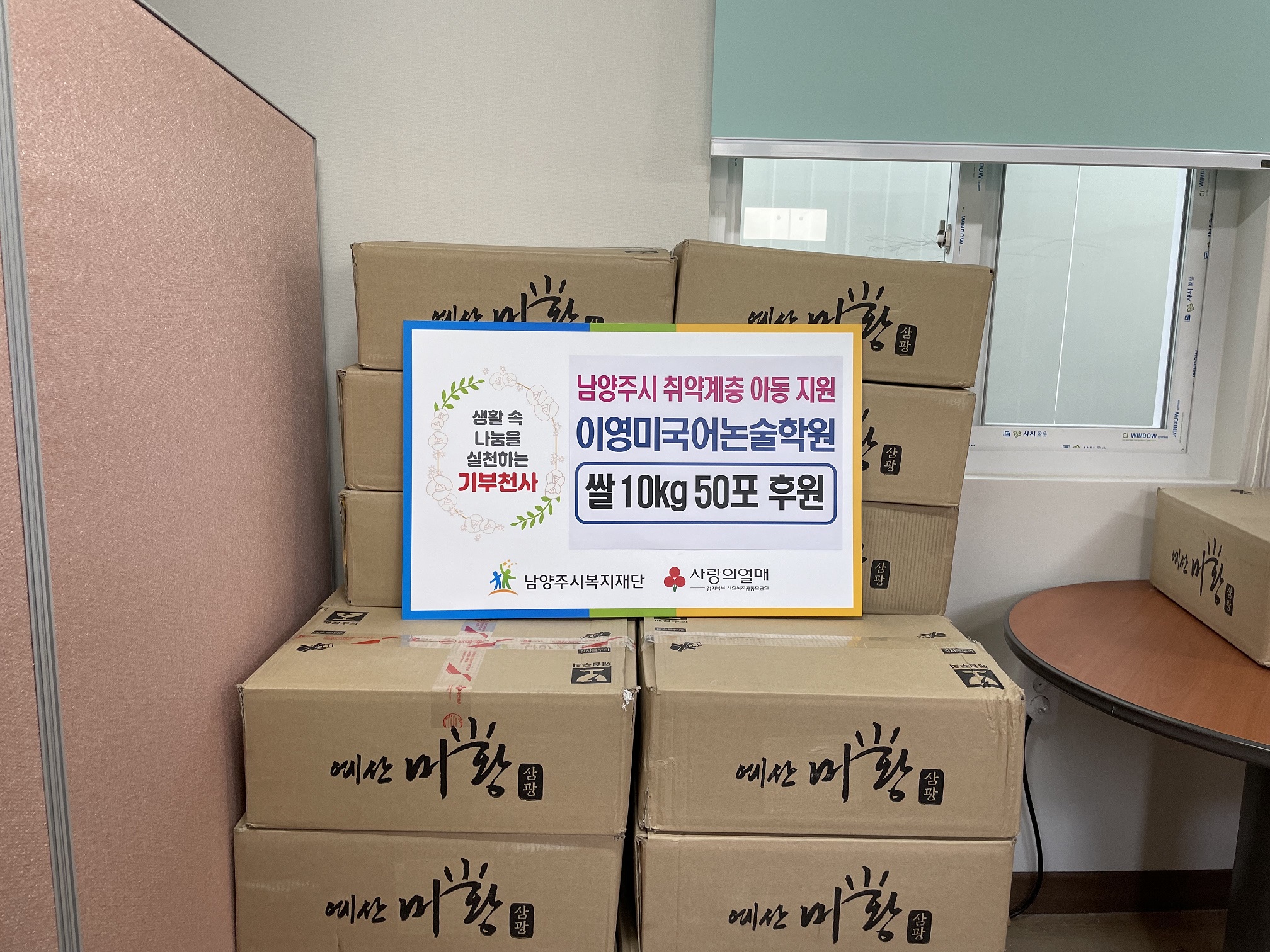 이영미국어논술학원 | [연번] : 정보가 없습니다. | [일자] : 2022.01.24. 작성자 관리자 등록일자 2022년 1월 25일 10시 29분 35초 조회 445 ▷ 후원일자 : 2022년 1월 24일(월) ▷ 후원내용 : 쌀(10kg) 50포 2022-01-24 이영미국어논술학원 쌀 전달1.jpg [ Size : 1.04MB, Down : 283 ] 미리보기 다운로드 2022-01-24 이영미국어논술학원 쌀 전달.jpg [ Size : 1.16MB, Down : 288 ] 미리보기 다운로드 목록보기