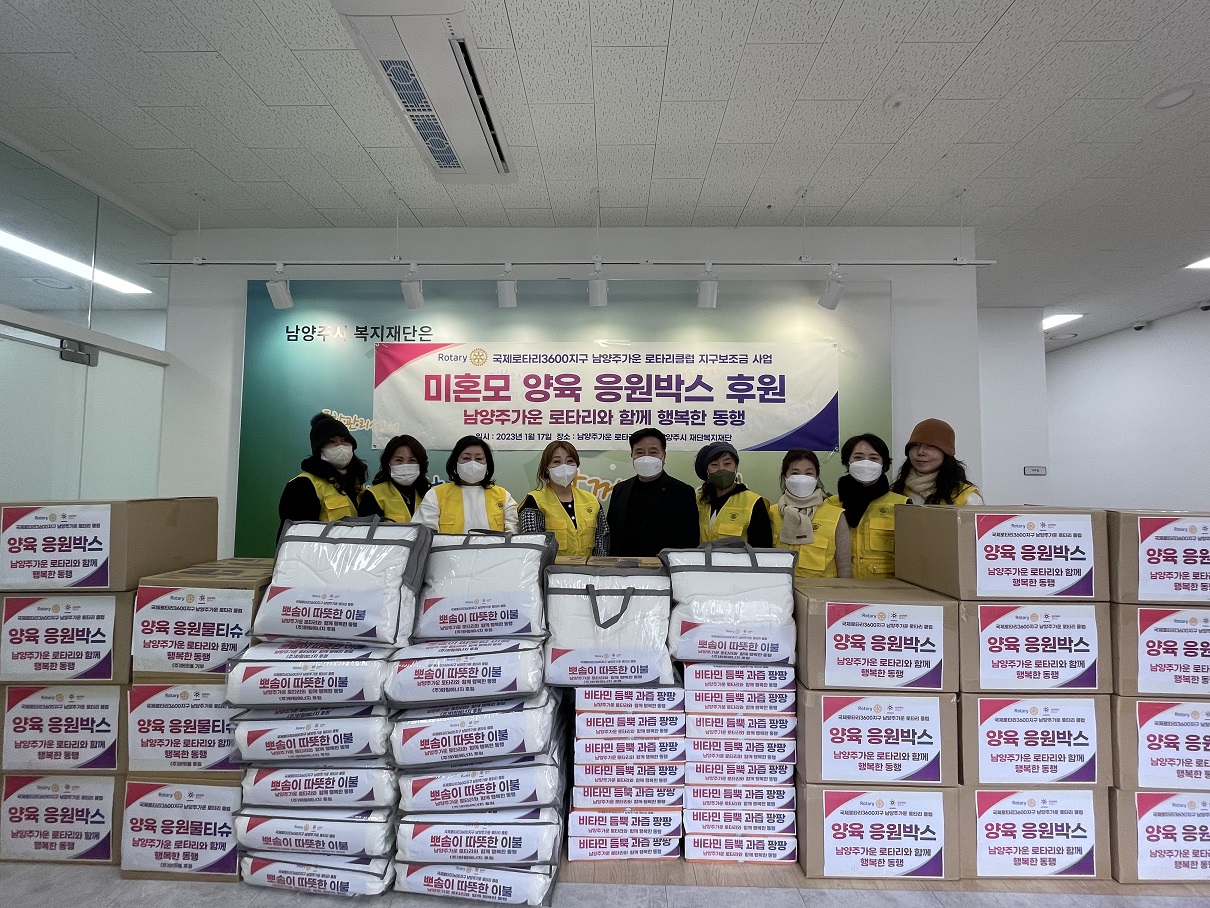 국제로타리3600지구 남양주가운로타리클럽 | [연번] : 정보가 없습니다. | [일자] : 2023.01.17. 작성자 관리자 등록일자 2023년 2월 2일 22시 45분 4초 조회 438 ▷ 후원일자 : 2023년 1월 17일(화) ▷ 후원내용 : 미혼모 지원 400만원 상당 꾸러미 60세트(이불, 식품, 생필품 구성) 2023-01-17 남양주가운로타리클럽 후원품 전달식.jpg [ Size : 295.78KB, Down : 220 ] 미리보기 다운로드 2023-01-17 남양주가운로타리클럽 후원품 전달식1.jpg [ Size : 524.42KB, Down : 213 ] 미리보기 다운로드 목록보기