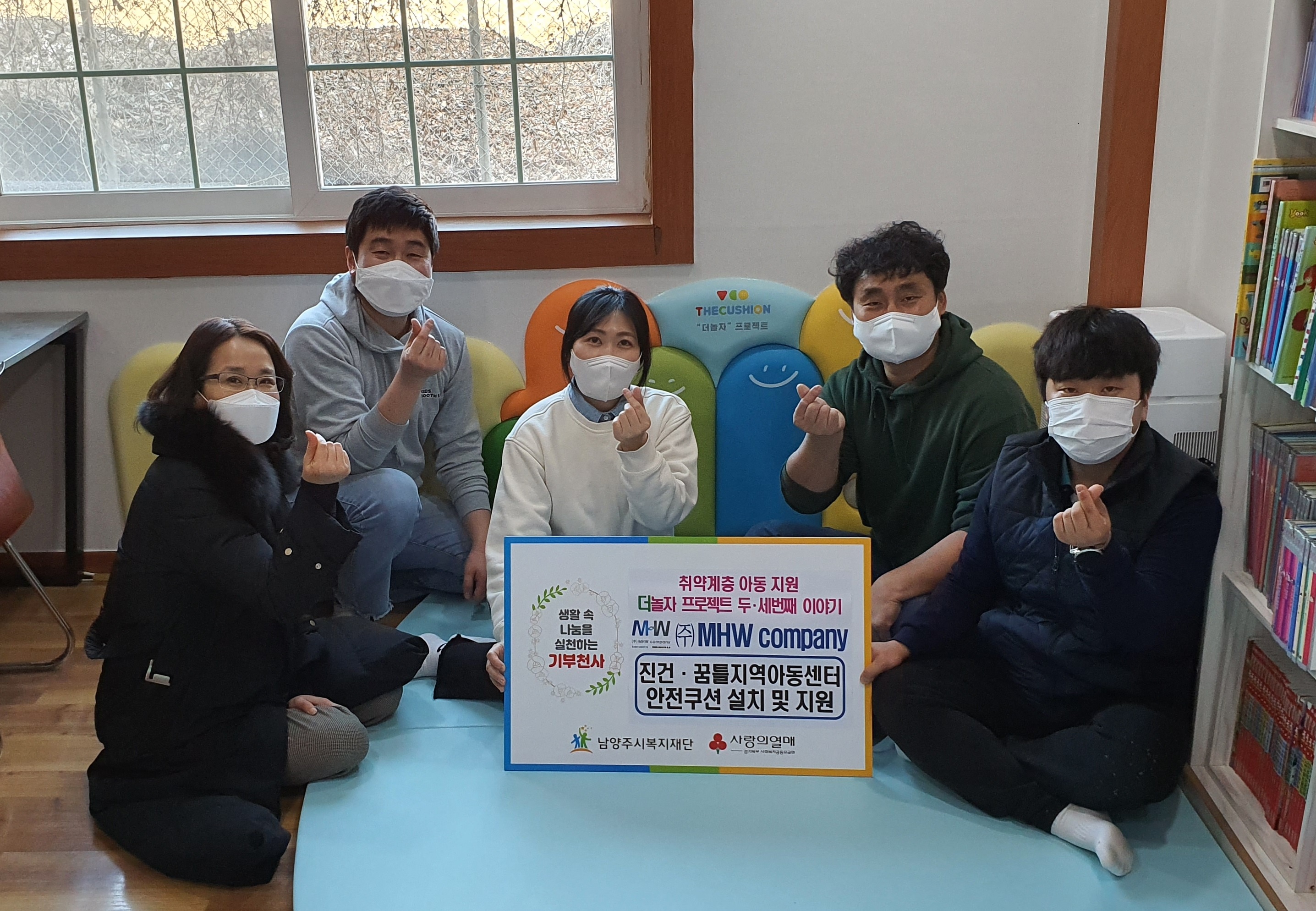 ㈜MHW company | [연번] : 정보가 없습니다. | [일자] : 2022.02.18. 작성자 관리자 등록일자 2022년 2월 21일 16시 42분 32초 조회 598 ▷ 후원일자 : 2022년 2월 18일(금) ▷ 후원내용 : 진건지역아동센터, 꿈틀지역아동센터 안전쿠션 무상 지원(두번째, 세번째) 2022-02-18 (주)MHW company, 진건지역아동센터 꿈틀지역아동센터 안전쿠션 전달식.jpg [ Size : 1.41MB, Down : 314 ] 미리보기 다운로드 목록보기