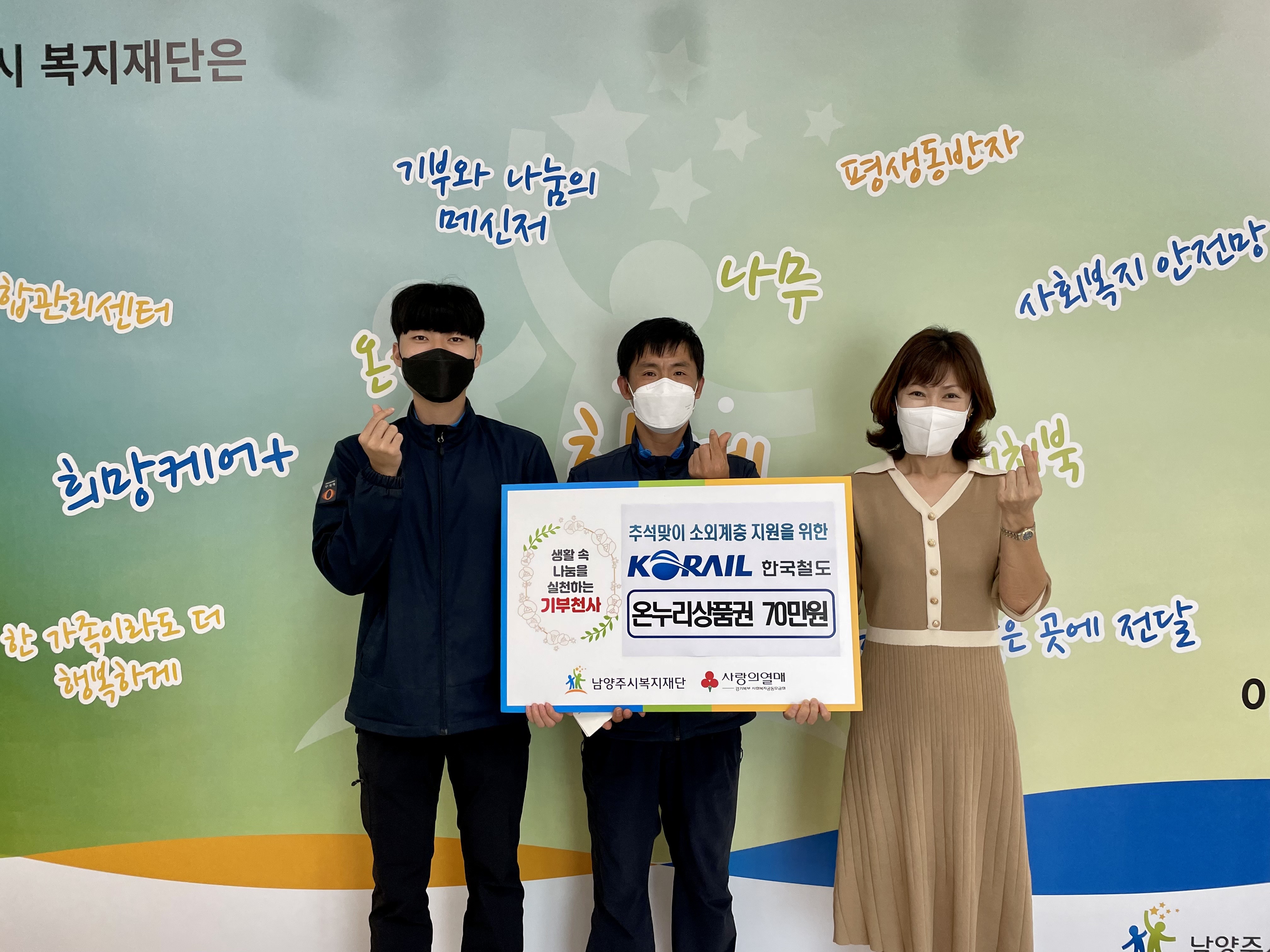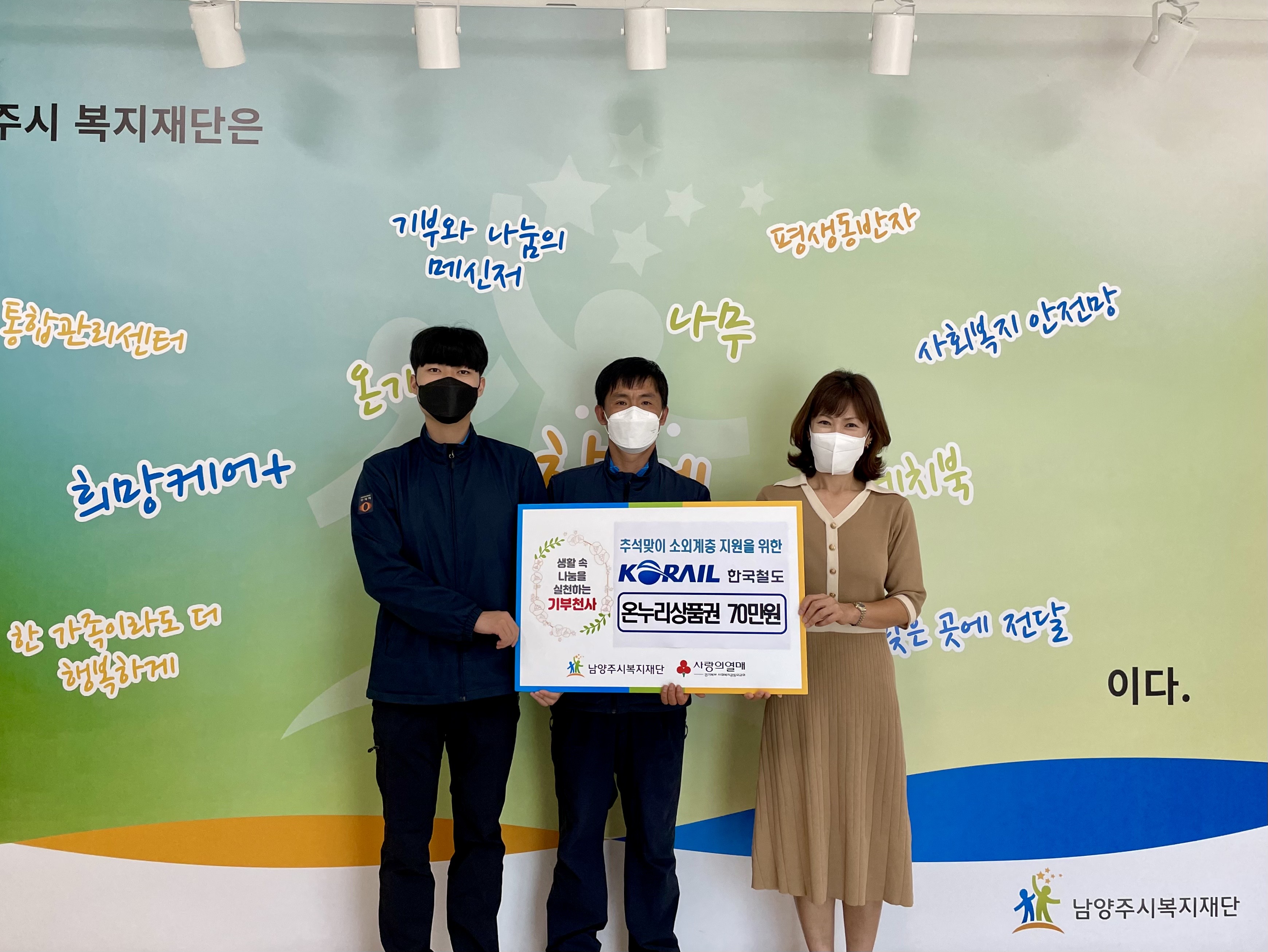 한국철도공사(코레일) | [연번] : 정보가 없습니다. | [일자] : 2022.09.06. 작성자 관리자 등록일자 2022년 9월 12일 11시 38분 10초 조회 498 ▷ 후원일자 : 2022년 9월 6일(화) ▷ 후원내용 : 70만원 상당 온누리상품권 기부 2022-09-06 한국철도공사(코레일) 전달식1.jpg [ Size : 1.72MB, Down : 229 ] 미리보기 다운로드 2022-09-06 한국철도공사(코레일) 전달식2.jpg [ Size : 2.47MB, Down : 238 ] 미리보기 다운로드 2022-09-06 한국철도공사(코레일) 전달식3.jpg [ Size : 1.41MB, Down : 243 ] 미리보기 다운로드 목록보기