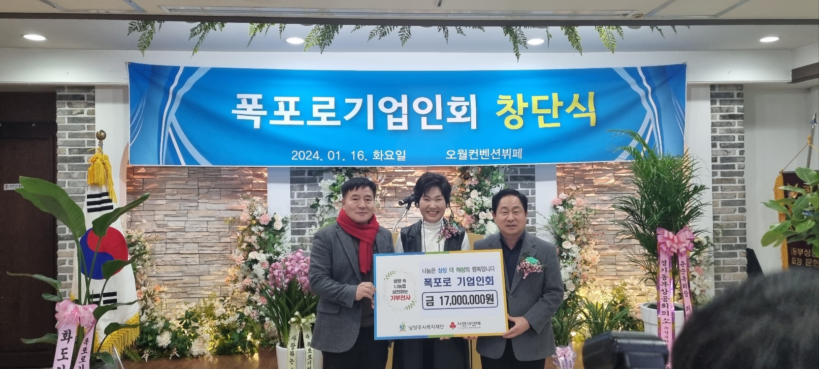 폭포로기업인회 | [연번] : 정보가 없습니다. | [일자] : 2024.01.16. 작성자 관리자 등록일자 2024년 1월 19일 17시 30분 4초 조회 407 ▷ 후원일자 : 2024년 1월 16일(화) ▷ 후원내용 : 금 518,490원 및 두유 80박스 KakaoTalk_20240116_174914316.jpg [ Size : 469.73KB, Down : 179 ] 미리보기 다운로드 목록보기