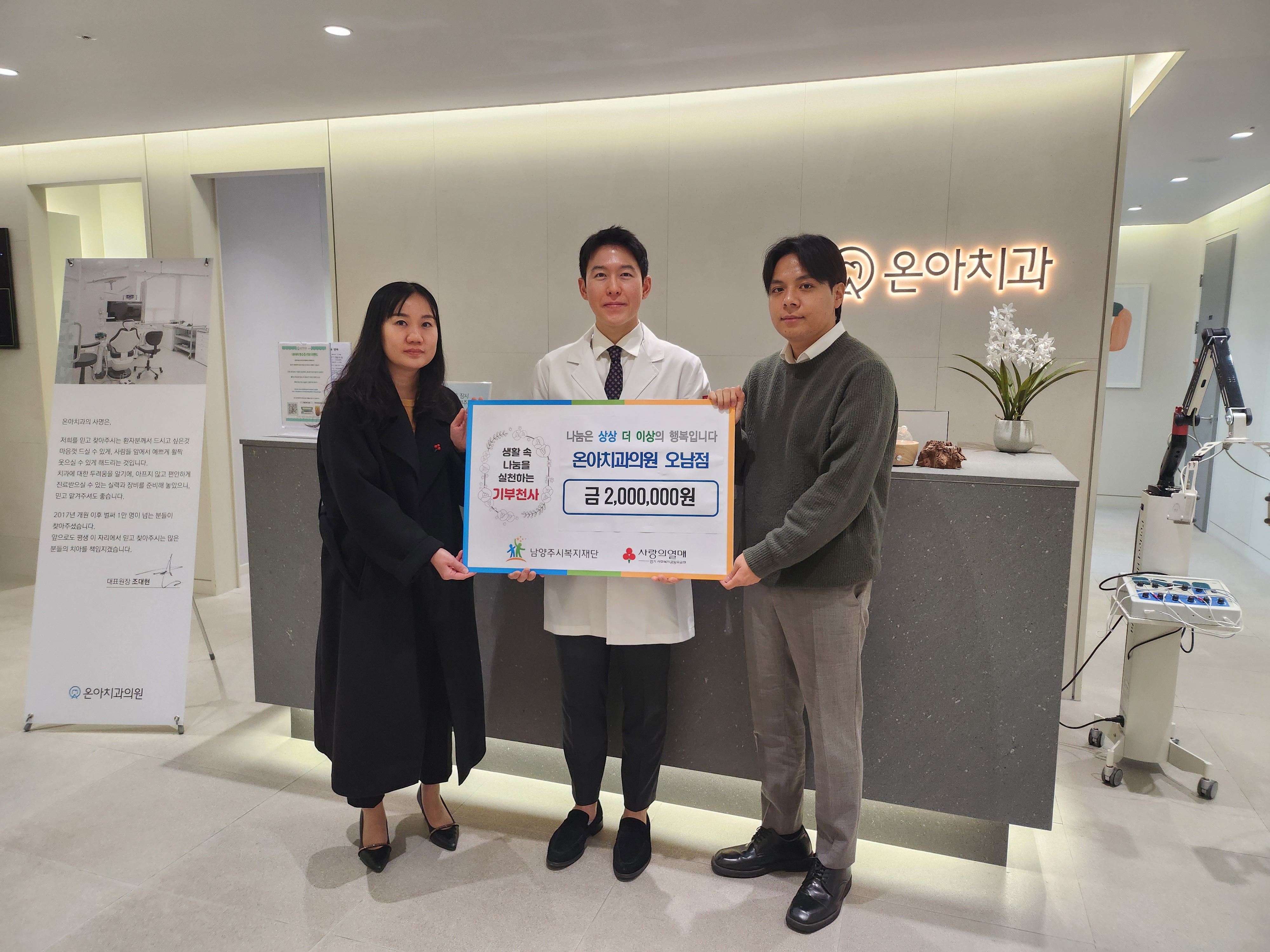 온아치과의원 오남점 | [연번] : 정보가 없습니다. | [일자] : 2023.12.14. 작성자 관리자 등록일자 2024년 1월 9일 9시 33분 48초 조회 333 ▷ 후원일자 : 2023년 12월 14일(목) ▷ 후원내용 : 금2,000,000원(금이백만원) 온아치과의원 오남점.jpg [ Size : 3.09MB, Down : 186 ] 미리보기 다운로드 목록보기