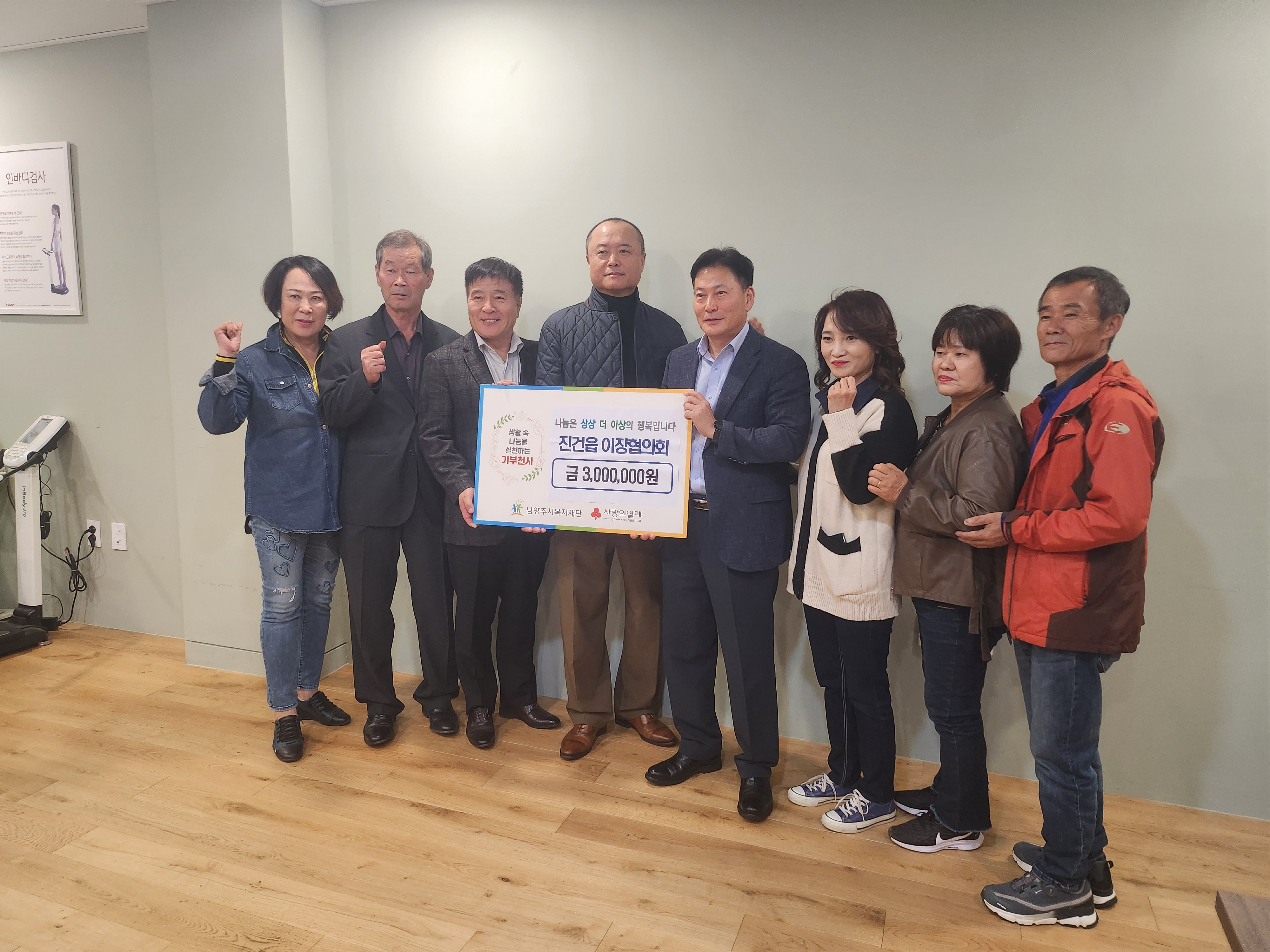 진건읍 이장협의회 | [연번] : 정보가 없습니다. | [일자] : 2023.10.19. 작성자 관리자 등록일자 2023년 10월 23일 9시 38분 31초 조회 381 ▷ 후원일자 : 2023년 10월 19일(목) ▷ 후원내용 : 진건문화축제 '불우이웃돕기' 포차 판매 수익금 3백만원 KakaoTalk_20231019_144437232_02.jpg [ Size : 2.95MB, Down : 185 ] 미리보기 다운로드 목록보기