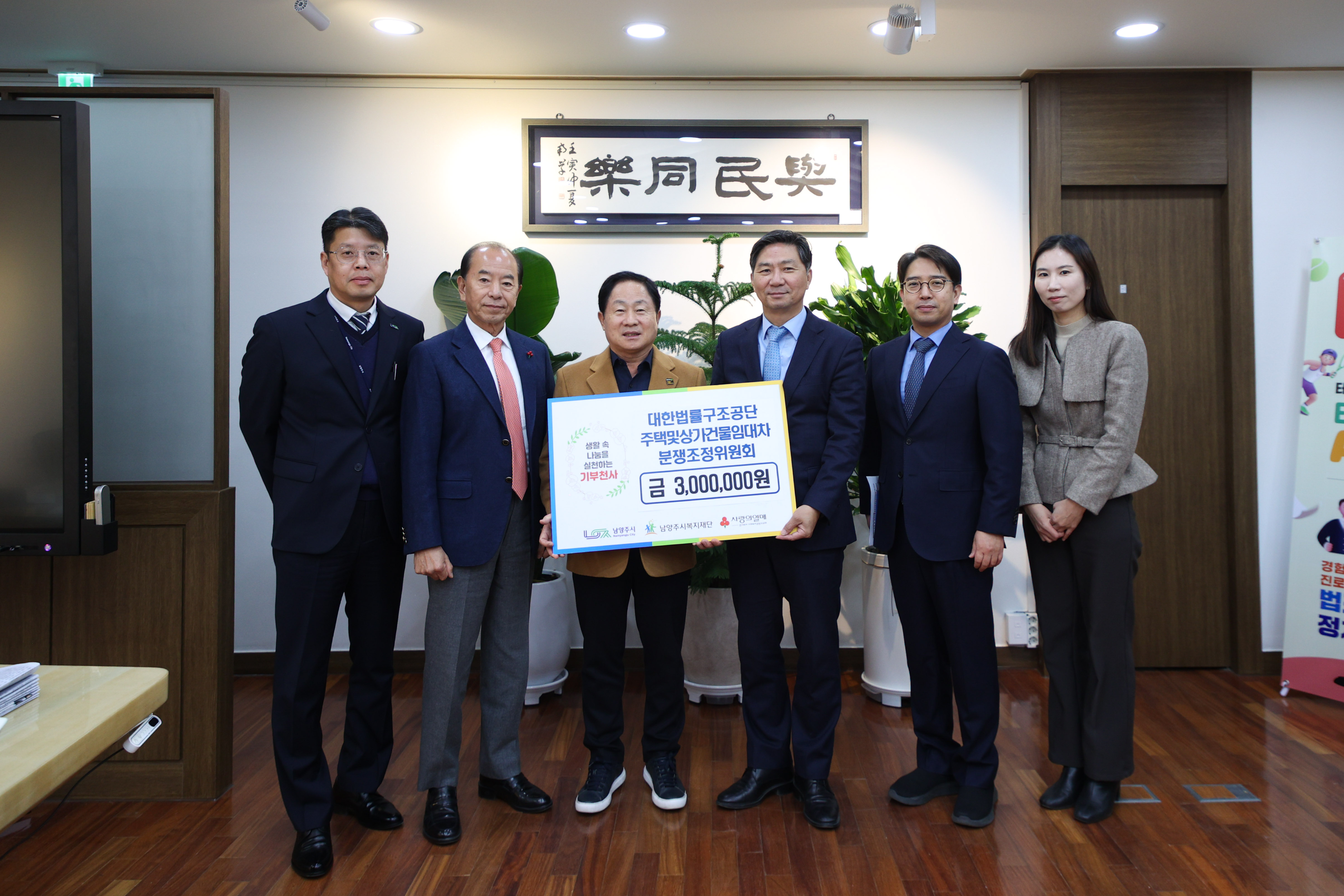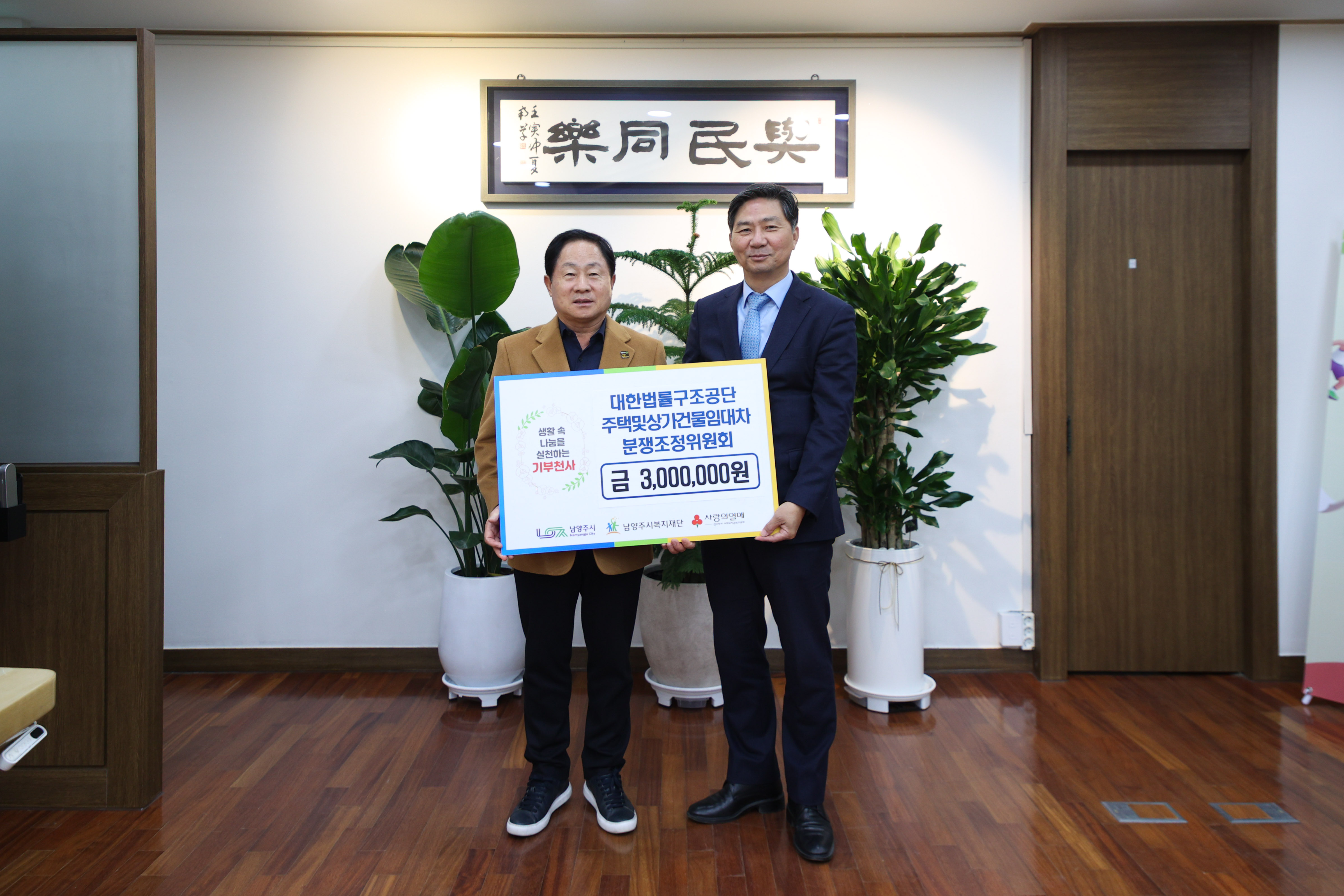 12월 4일 대한법률구조공단 주택 및 상가건물임대차분쟁조정위원회에서 관내 취약계층을 위한 성금 300만원을 전달해주셨습니다.