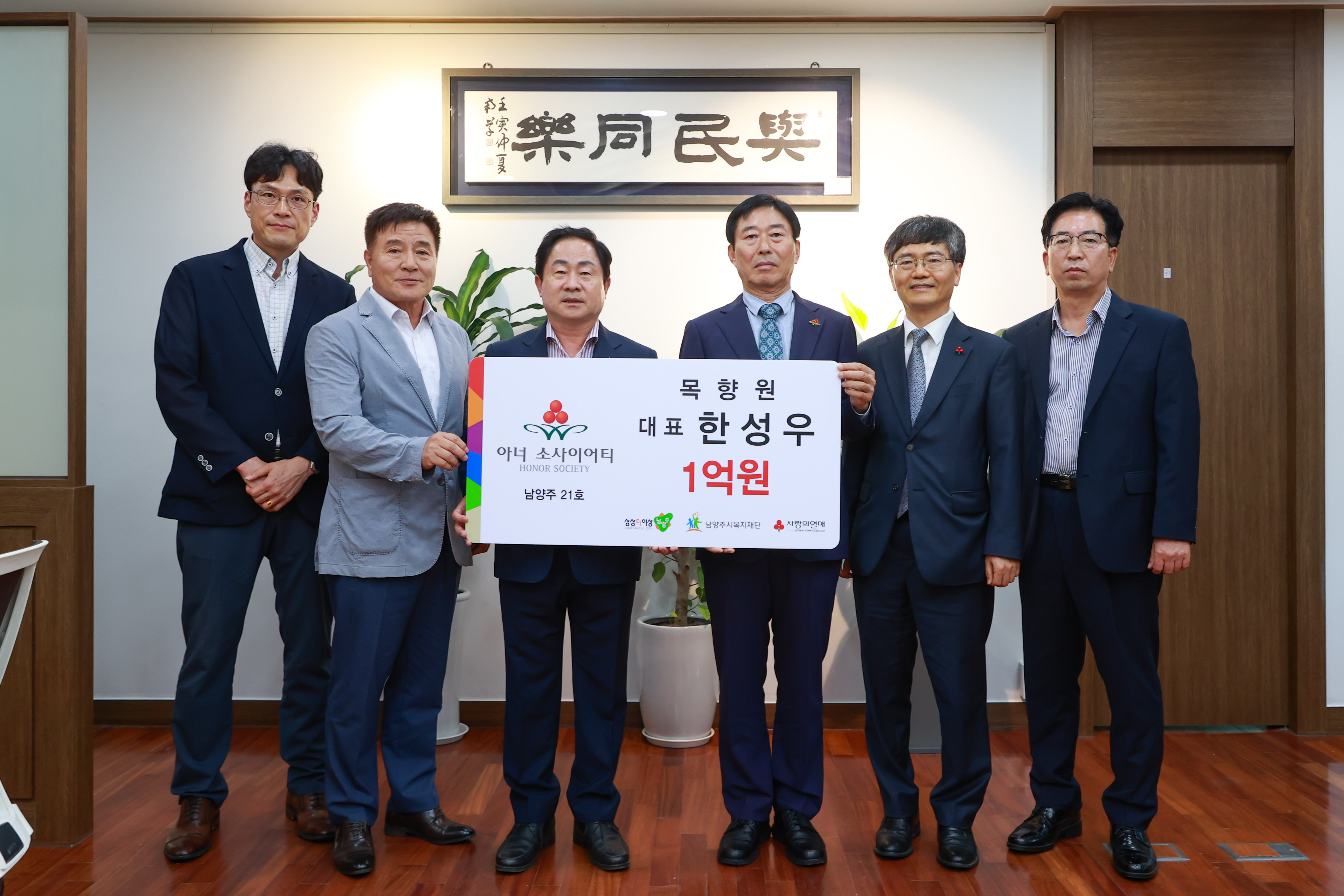 목향원 한성우 대표 | [연번] : 정보가 없습니다. | [일자] : 2023.07.19. 작성자 관리자 등록일자 2023년 7월 20일 10시 48분 57초 조회 361 ▷ 후원일자 : 2023년 7월 19일(수) ▷ 후원내용 : 금 1억원 약정 ※ 아너 소사이어티 21호 가입 AH4I1992.JPG [ Size : 1.34MB, Down : 217 ] 미리보기 다운로드 목록보기