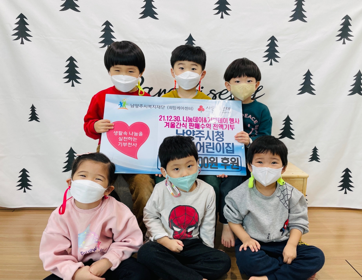 남양주시청 개나리어린이집 | [연번] : 정보가 없습니다. | [일자] : 2022.01.13. 작성자 관리자 등록일자 2022년 1월 15일 15시 29분 44초 조회 400 ▷ 후원일자 : 2022년 1월 13일(목) ▷ 후원내용 : 나눔데이 & 기부데이 행사 겨울간식 판매수익 500,000원 기부 남양주시청 개나리어린이집 전달식.jpg [ Size : 759.19KB, Down : 296 ] 미리보기 다운로드 목록보기