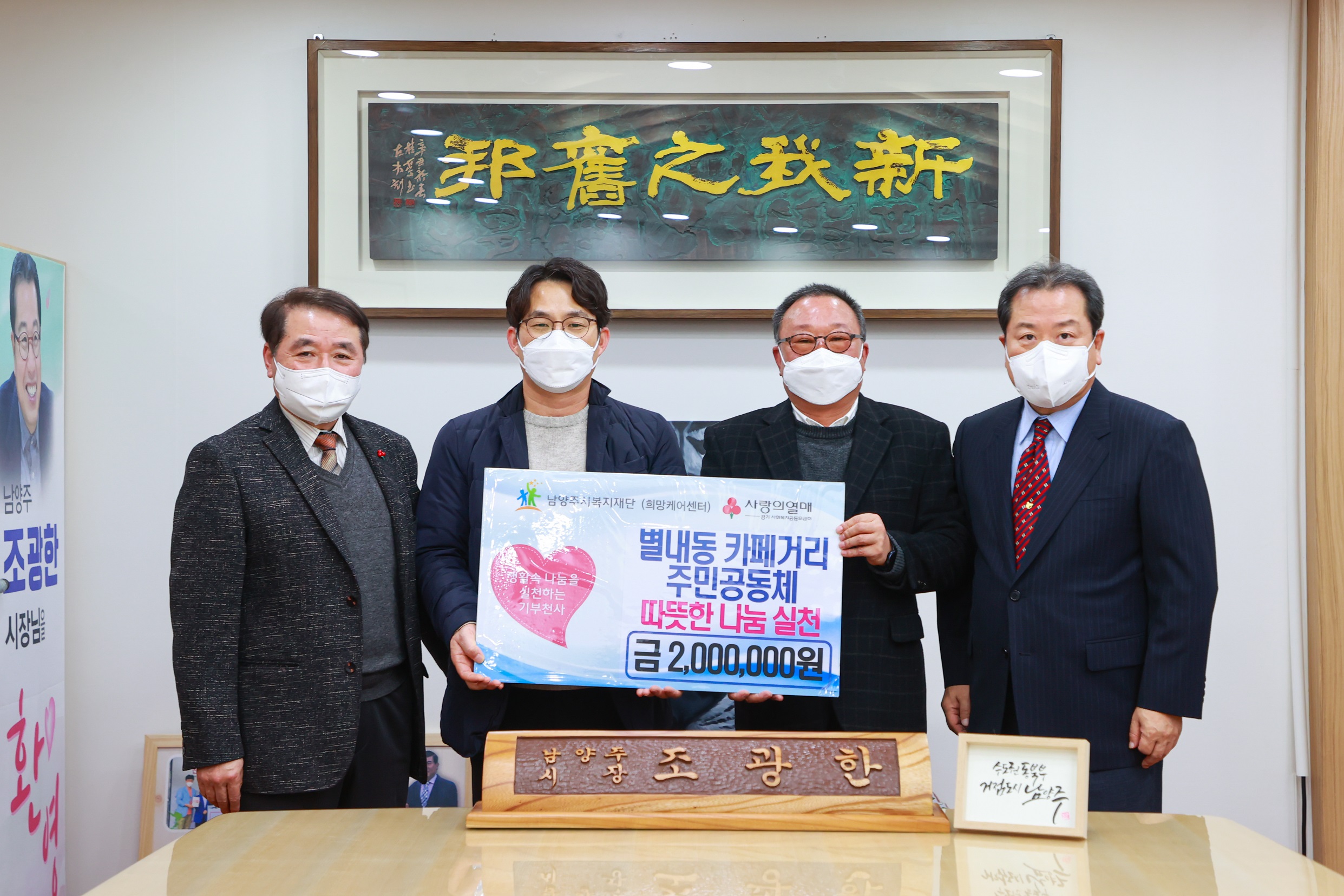 별내동 카페거리 주민공동체 | [연번] : 정보가 없습니다. | [일자] : 2022.01.18. 작성자 관리자 등록일자 2022년 1월 18일 21시 48분 20초 조회 454 ▷ 후원일자 : 2022년 1월 18일(화) ▷ 후원내용 : 취약계층 지원 위한 200만원 후원 별내동카페거리주민공동체 전달식.jpg [ Size : 929.91KB, Down : 318 ] 미리보기 다운로드 목록보기