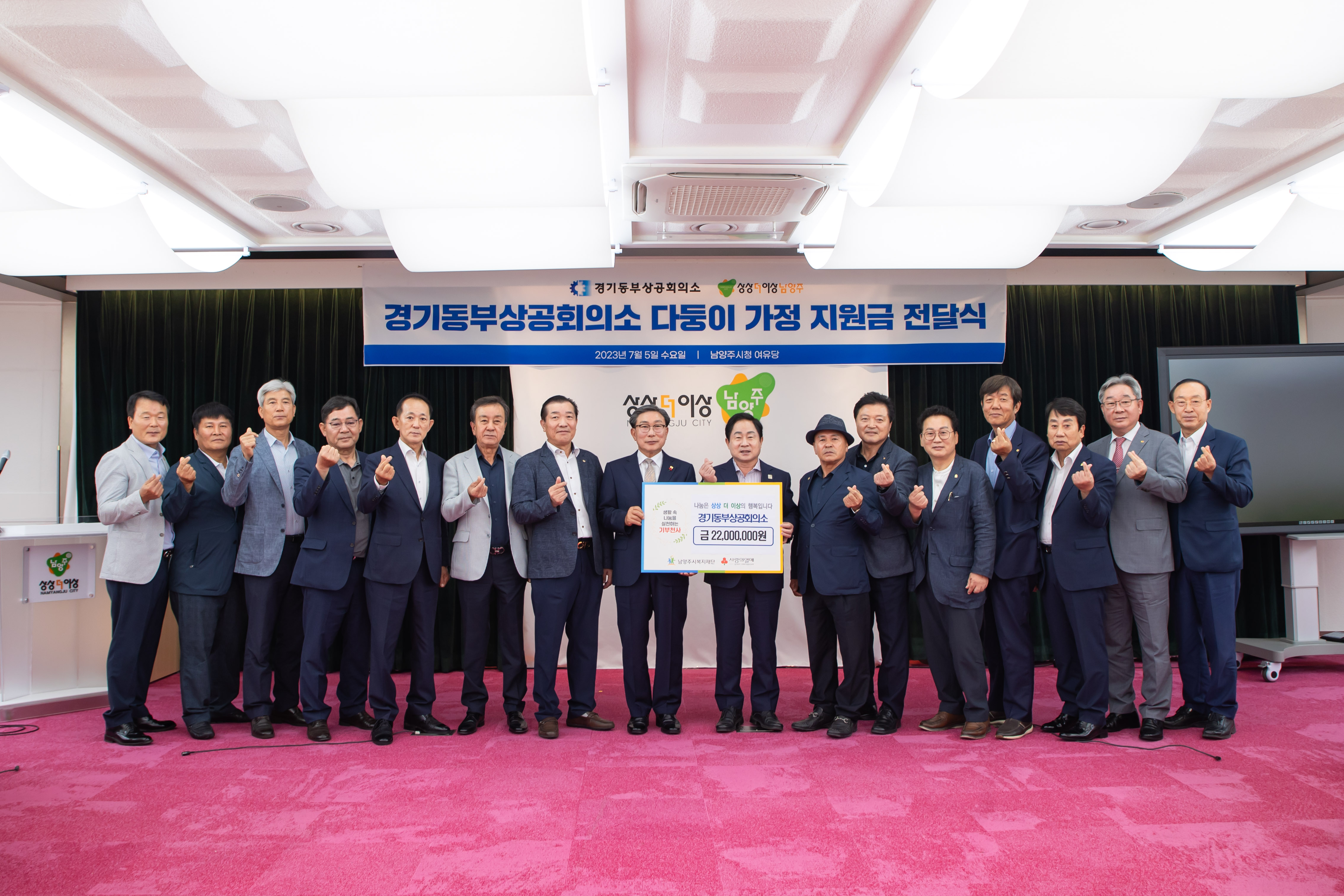 경기동부상공회의소 | [연번] : 정보가 없습니다. | [일자] : 2023.07.05. 작성자 관리자 등록일자 2023년 7월 10일 14시 48분 34초 조회 444 ▷ 후원일자 : 2023년 7월 5일(수) ▷ 후원내용 : 남양주다둥이 多가치 키움 지원 2,200만원 AH4I5904.JPG [ Size : 1.62MB, Down : 202 ] 미리보기 다운로드 목록보기