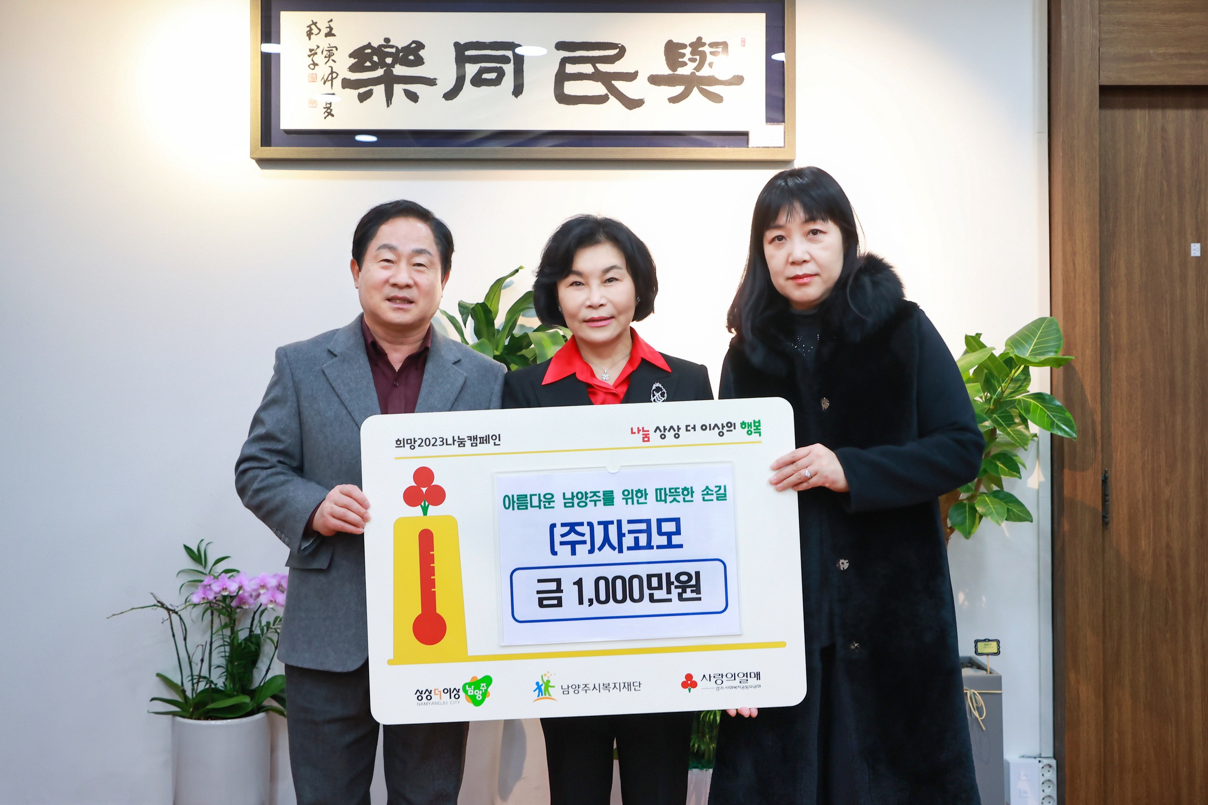 ㈜자코모 | [연번] : 정보가 없습니다. | [일자] : 2023.01.30. 작성자 관리자 등록일자 2023년 2월 4일 13시 55분 1초 조회 483 ▷ 후원일자 : 2023년 1월 30일(월)▷ 후원내용 : 남양주시 취약계층 지원 1천만원 기부 2023-01-30 (주)자코모 1천만원 후원 전달식.jpg [ Size : 854.99KB, Down : 195 ] 미리보기 다운로드 목록보기